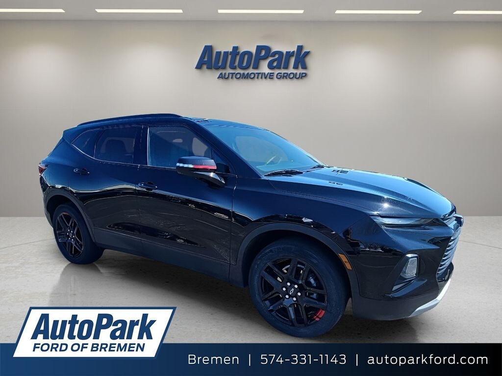 Vehicle Is Equipped With Redline Edition (Black w/Red Outline Blazer Badges, Front & Rear Black Bowties, Redline Decals (LPO), and Wheels: 20" Gloss Black Painted Alum w/Red Accents), Preferred Equipment Group 3LT (6-Way Power Front Passenger Seat Adjuster, Black Roof Rails, Heated Driver & Front Passenger Seats, Inside Rear-View Auto-Dimming Mirror, Lane Change Alert w/Side Blind Zone Alert, Outside Heated Power-Adjustable Body-Color Mirrors, Rear Cross Traffic Alert, Rear Park Assist w/Audible Warning, Rear Power Programmable Liftgate, Remote Start, and Universal Home Remote), Sound & Technology Package (120-Volt Power Outlet, 2 USB Data Ports w/SD Card Reader, HD Surround Vision, Radio: Chevrolet Infotainment 3 Plus System, Rear Camera Mirror, Rear Camera Mirror Washer, and SiriusXM w/360L), 170 Amp Alternator, 3.47 Final Drive Axle Ratio, 4-Wheel Disc Brakes, 6 Speakers, 6-Speaker Audio System Feature, ABS brakes, Air Conditioning, Alloy wheels, AM/FM radio: SiriusXM, Apple CarPlay/Android Auto, Auto High-beam Headlights, Auto-dimming door mirrors, Auto-dimming Rear-View mirror, Automatic temperature control, Brake assist, Bumpers: body-color, Child-Seat-Sensing Airbag, Compass, Delay-off headlights, Driver door bin, Driver vanity mirror, Dual front impact airbags, Dual front side impact airbags, Electronic Stability Control, Emergency communication system: OnStar and Chevrolet connected services capable, Exterior Parking Camera Rear, Four wheel independent suspension, Front anti-roll bar, Front Bucket Seats, Front Center Armrest, Front dual zone A/C, Front reading lights, Fully automatic headlights, Garage door transmitter, Heated door mirrors, Heated front seats, High-Intensity Discharge Headlights, Illuminated entry, Knee airbag, Leather Shift Knob, Low tire pressure warning, Not Equipped w/Driver & Fr Passenger Heated Seats, Not Equipped w/Rear Park Assist, Occupant sensing airbag, Outside temperature display, Overhead airbag, Overhead console, Panic alarm, Passenger door bin, Passenger vanity mirror, Perforated Leather-Appointed Seat Trim, Power door mirrors, Power driver seat, Power Liftgate, Power passenger seat, Power steering, Power windows, Radio data system, Radio: Chevrolet Infotainment 3 System, Rear anti-roll bar, Rear reading lights, Rear seat center armrest, Rear wi