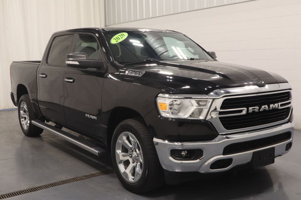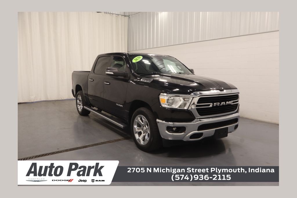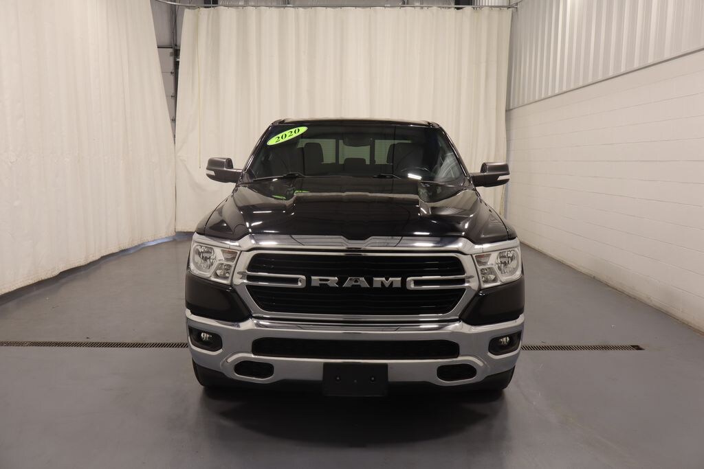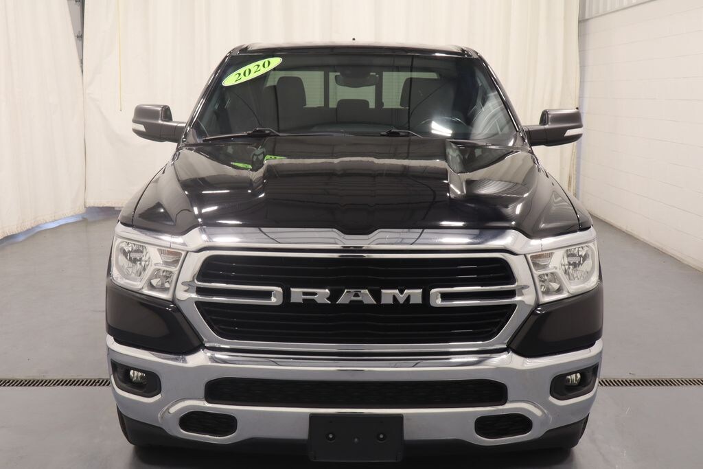 2020 Ram 1500 Diamond Black Crystal Pearlcoat Big Horn/Lone Star 4WD NON-SMOKER, HEMI 5.7L V8 Multi Displacement VVT, 4WD, 2nd Row In Floor Storage Bins, Alloy wheels, Auto-Dimming Rear-View Mirror, Big Horn Badge, Big Horn IP Badge, Big Horn Level 1 Equipment Group, Black Premium Power Mirrors, Class IV Receiver Hitch, Cluster 3.5" TFT Color Display, Electronic Stability Control, Foam Bottle Insert (Door Trim Panel), Front fog lights, Fully automatic headlights, Glove Box Lamp, Heated door mirrors, ParkView Rear Back-Up Camera, Power 4-Way Driver Lumbar Adjust, Power 8-Way Driver Seat, Power Adjustable Pedals, Power door mirrors, Quick Order Package 27Z Big Horn, Radio: Uconnect 3 w/5" Display, Radio: Uconnect 4 w/8.4" Display, Rear Dome w/On/Off Switch Lamp, Rear Power Sliding Window, Rear step bumper, Rear Window Defroster, Remote keyless entry, SiriusXM Satellite Radio, Steering wheel mounted audio controls, Sun Visors w/Illuminated Vanity Mirrors, Universal Garage Door Opener, Wheels: 20" x 9" Aluminum Chrome Clad (WRK).