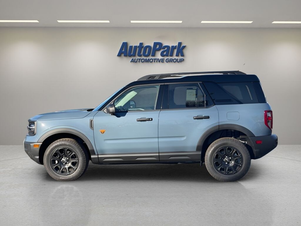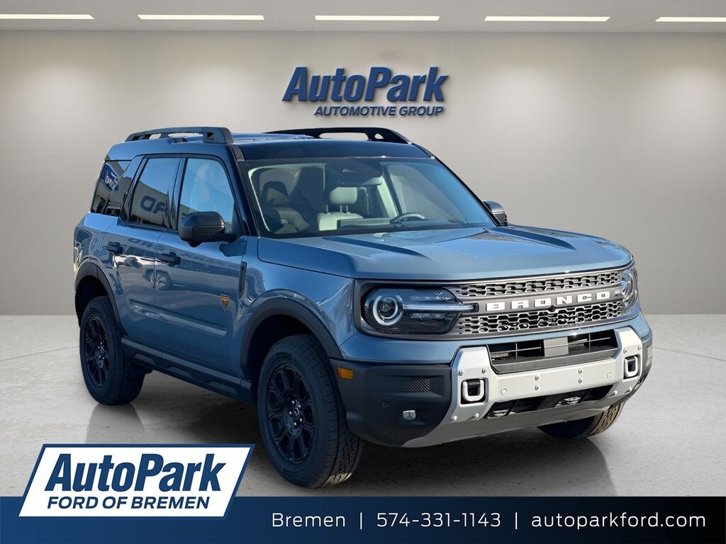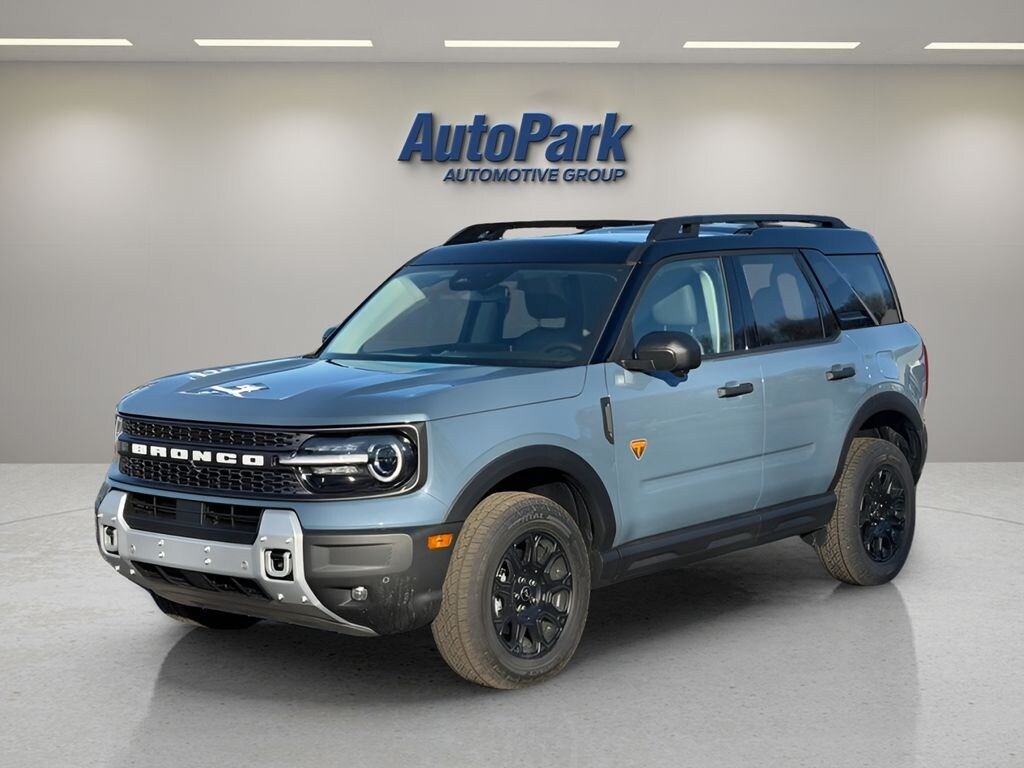 Vehicle Is Equipped With Badlands Tech Package (Connected Navigation (1-Year Included), Noise Reduction Module, and Radio: HD w/B&O Sound System by Bang & Olufsen), Equipment Group 400A Standard Package (AM/FM Stereo, Leather-Trimmed Heated Front Sport Contour Bucket Seats, SiriusXM with 360L, SYNC 4 with Enhanced Voice Recognition, and Wheels: 17" Matte Black-Painted Aluminum), Ford Connectivity Package (1-Year Included), Internet access capable: 5G Modem - Ford Connectivity Package, 4-Wheel Disc Brakes, 6 Speakers, ABS brakes, Air Conditioning, Alloy wheels, AM/FM radio: SiriusXM with 360L, Apple CarPlay/Android Auto, Auto High-beam Headlights, Auto-dimming Rear-View mirror, Automatic temperature control, Brake assist, Cargo Management System (Shelf/Divider/Table), Compass, Delay-off headlights, Driver door bin, Driver vanity mirror, Dual front impact airbags, Dual front side impact airbags, Electronic Stability Control, Emergency communication system: SYNC 4 911 Assist, Exterior Parking Camera Rear, Four wheel independent suspension, Front anti-roll bar, Front Bucket Seats, Front Center Armrest, Front fog lights, Front reading lights, Fully automatic headlights, Heated door mirrors, Heated front seats, Heated steering wheel, Illuminated entry, Knee airbag, Low tire pressure warning, Memory seat, Occupant sensing airbag, Outside temperature display, Overhead airbag, Overhead console, Panic alarm, Passenger door bin, Passenger vanity mirror, Power door mirrors, Power driver seat, Power Moonroof, Power passenger seat, Power steering, Power windows, Radio data system, Rear anti-roll bar, Rear reading lights, Rear seat center armrest, Rear window defroster, Rear window wiper, Remote keyless entry, Security system, Speed control, Speed-sensing steering, Speed-Sensitive Wipers, Split folding rear seat, Steering wheel mounted audio controls, Tachometer, Telescoping steering wheel, Tilt steering wheel, Traction control, Trip computer, and Variably intermittent wipers.