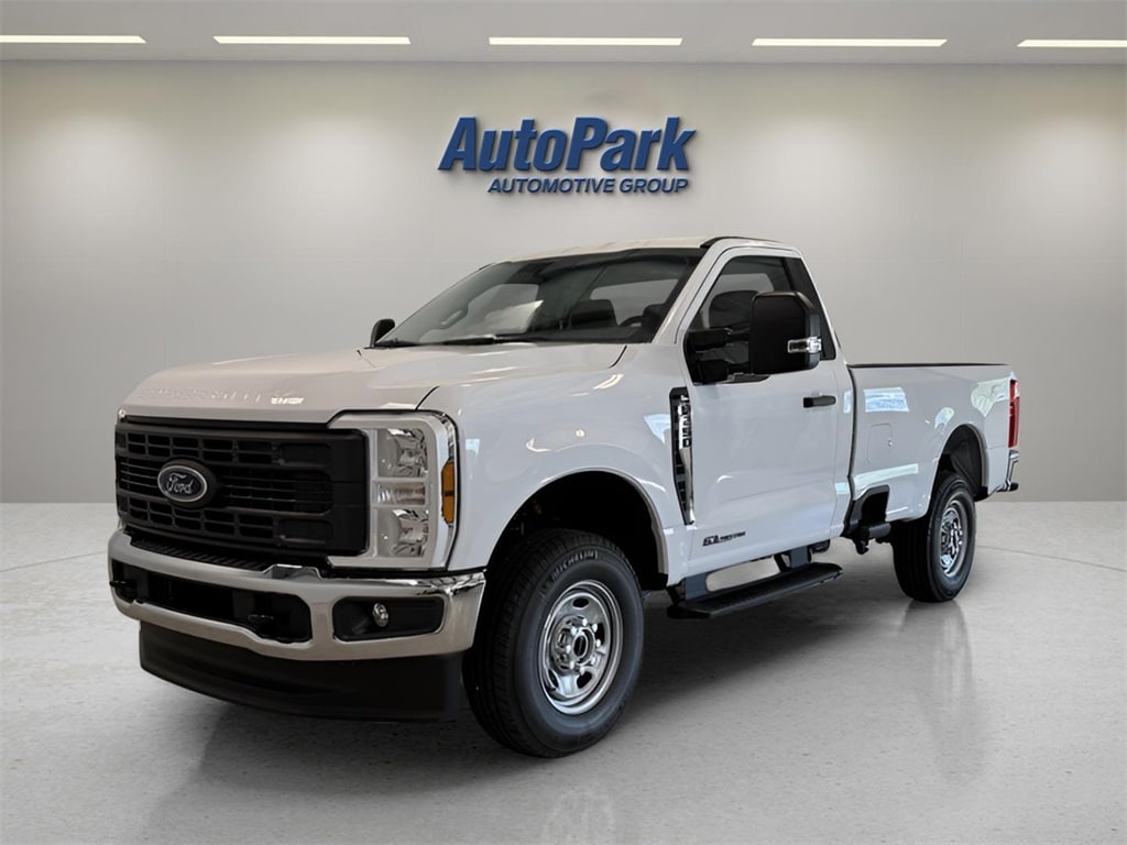 Vehicle Is Equipped With Ford Connectivity Package (1-Year Included), GVWR: 10,000 lb Payload Package, Internet access capable: 5G Modem - Ford Connectivity Package, Power Stroke 6.7L V8 DI 32V OHV Turbodiesel, 4WD, Medium Dark Slate w/Cloth 40/20/40 Split Bench Seat, ABS brakes, Compass, Electronic Stability Control, Heated door mirrors, Illuminated entry, Low tire pressure warning, Remote keyless entry, Traction control, 17" Argent Painted Steel Wheels, 3.73 Axle Ratio, 4 Speakers, 4-Wheel Disc Brakes, Air Conditioning, AM/FM radio, AM/FM Stereo w/MP3 Player, Brake assist, Delay-off headlights, Dual front impact airbags, Dual front side impact airbags, Emergency communication system: SYNC 4 911 Assist, Exterior Parking Camera Rear, Front anti-roll bar, Front Center Armrest w/Storage, Front reading lights, Fully automatic headlights, HD Vinyl 40/20/40 Split Bench Seat, Outside temperature display, Overhead airbag, Overhead console, Panic alarm, Passenger cancellable airbag, Passenger vanity mirror, Power door mirrors, Power steering, Power windows, Rear step bumper, Security system, Speed control, Steering wheel mounted audio controls, SYNC 4, Tachometer, Telescoping steering wheel, Tilt steering wheel, Trip computer, Turn signal indicator mirrors, and Variably intermittent wipers.