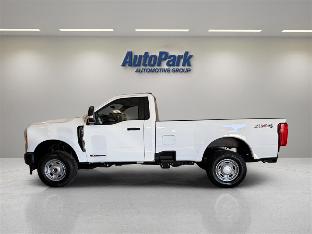 Vehicle Is Equipped With Ford Connectivity Package (1-Year Included), GVWR: 10,000 lb Payload Package, Internet access capable: 5G Modem - Ford Connectivity Package, Power Stroke 6.7L V8 DI 32V OHV Turbodiesel, 4WD, Oxford White, MEDIUM DARK SLATE, ABS brakes, Compass, Electronic Stability Control, Heated door mirrors, Illuminated entry, Low tire pressure warning, Remote keyless entry, Traction control, 17" Argent Painted Steel Wheels, 3.73 Axle Ratio, 4 Speakers, 4-Wheel Disc Brakes, Air Conditioning, AM/FM radio, AM/FM Stereo w/MP3 Player, Brake assist, Delay-off headlights, Dual front impact airbags, Dual front side impact airbags, Emergency communication system: SYNC 4 911 Assist, Exterior Parking Camera Rear, Front anti-roll bar, Front Center Armrest w/Storage, Front reading lights, Fully automatic headlights, HD Vinyl 40/20/40 Split Bench Seat, Outside temperature display, Overhead airbag, Overhead console, Panic alarm, Passenger cancellable airbag, Passenger vanity mirror, Power door mirrors, Power steering, Power windows, Rear step bumper, Security system, Speed control, Steering wheel mounted audio controls, SYNC 4, Tachometer, Telescoping steering wheel, Tilt steering wheel, Trip computer, Turn signal indicator mirrors, and Variably intermittent wipers.