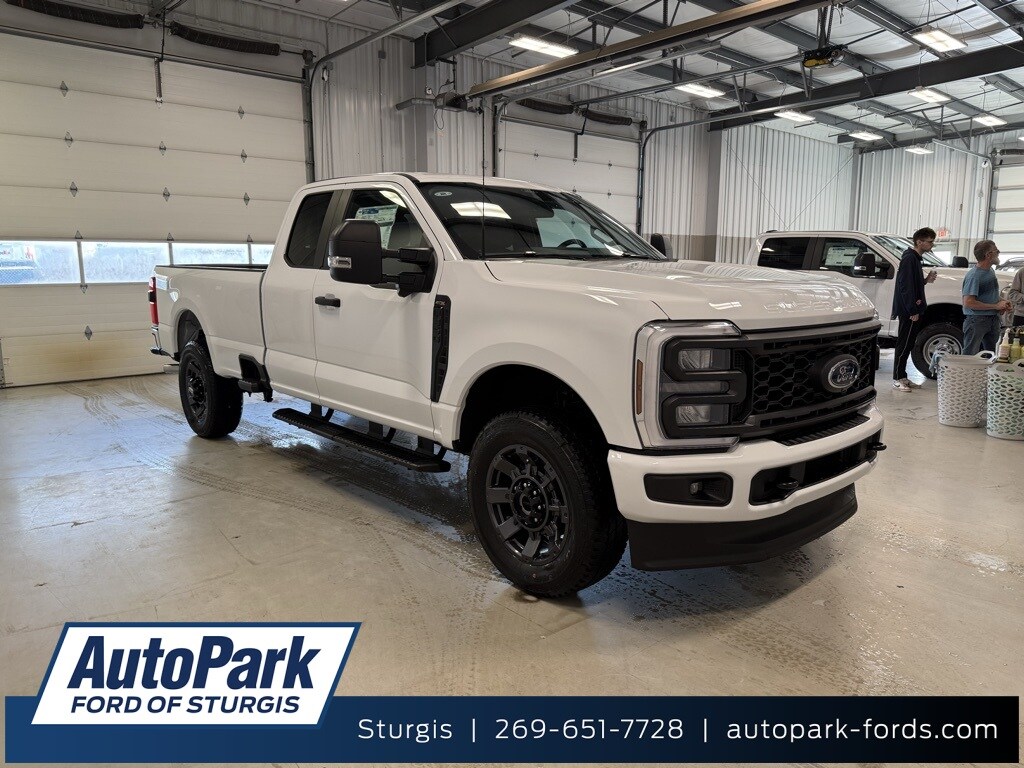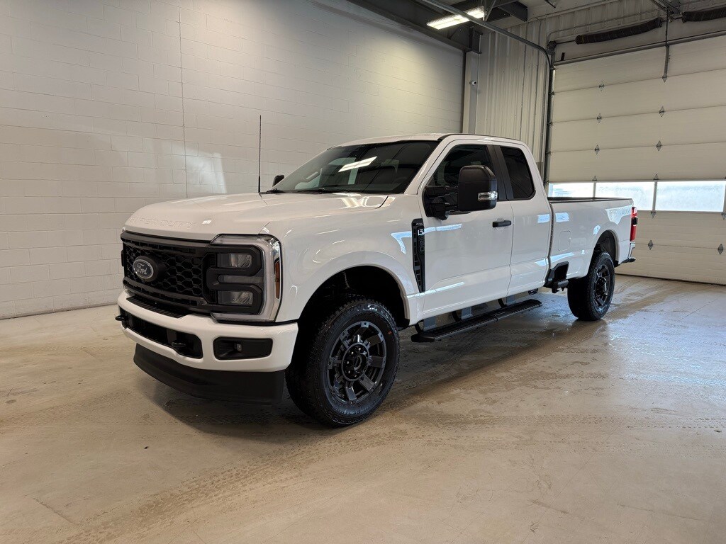 Vehicle Is Equipped With STX Appearance Package (Body-Color Front Bumper, Body-Color Rear Bumper, Cloth 40/20/40 Split Bench Seat, Color-Coordinated Full Carpet w/Floor Mats, LED Fog Lamps, Painted Grille, and Wheels: 18" Ebony Black Painted Aluminum), Ford Connectivity Package (1-Year Included), Internet access capable: 5G Modem - Ford Connectivity Package, F-350 SuperDuty XL, 7.3L V8 PFI SOHC 16V Federal 405hp, 10-Speed Automatic, 4WD, ABS brakes, Compass, Electronic Stability Control, Heated door mirrors, Illuminated entry, Low tire pressure warning, Remote keyless entry, Traction control, 17" Argent Painted Steel Wheels, 3.73 Axle Ratio, 4-Wheel Disc Brakes, 6 Speakers, Air Conditioning, AM/FM radio, AM/FM Stereo w/MP3 Player, Brake assist, Delay-off headlights, Dual front impact airbags, Dual front side impact airbags, Emergency communication system: SYNC 4 911 Assist, Exterior Parking Camera Rear, Front anti-roll bar, Front Center Armrest w/Storage, Front reading lights, Fully automatic headlights, HD Vinyl 40/20/40 Split Bench Seat, Outside temperature display, Overhead airbag, Overhead console, Panic alarm, Passenger cancellable airbag, Passenger vanity mirror, Power door mirrors, Power steering, Power windows, Rear step bumper, Security system, Speed control, Split folding rear seat, Steering wheel mounted audio controls, SYNC 4, Tachometer, Telescoping steering wheel, Tilt steering wheel, Trip computer, Turn signal indicator mirrors, and Variably intermittent wipers.