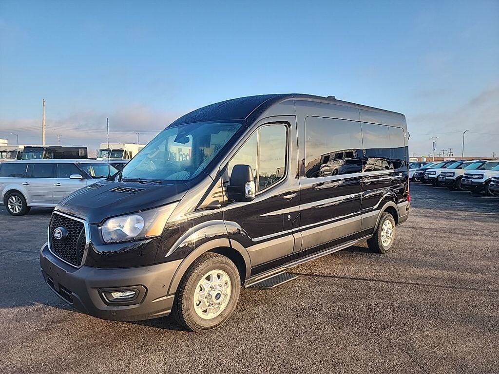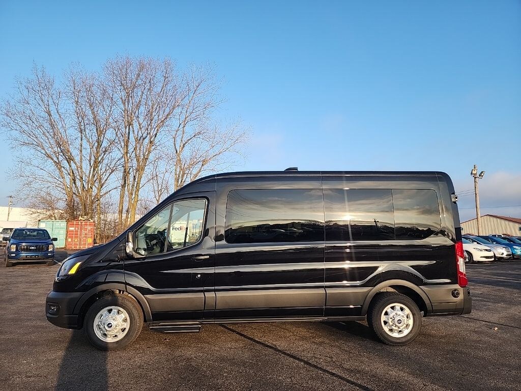 Vehicle Is Equipped With Close Assist Feature on Side Sliding Door, Ford Connectivity Package (1-Year Included), 15-Passenger Seats, 253-Degree Rear Door Opening, 3.73 Limited-Slip Axle Ratio, 3rd row seats: split-bench, 4-Wheel Disc Brakes, 4th-Row Bench Seat, 8 Speakers, ABS brakes, Air Conditioning, Apple CarPlay/Android Auto, Auto High-beam Headlights, Black High-Intensity Discharge (HID) Headlamps, Brake assist, Cloth Front Bucket Seats, Delay-off headlights, Driver door bin, Driver vanity mirror, Driver's Seat Mounted Armrest, Dual AGM Batteries (70 Amp-Hr Each), Dual front impact airbags, Dual front side impact airbags, Electronic Stability Control, Emergency communication system: 911 Assist, Extended Length Passenger Running Board, Front anti-roll bar, Front Black Wheel Well Liners, Front Bucket Seats, Front License Plate Bracket, Front Overhead Shelf, Front reading lights, Front wheel independent suspension, Illuminated entry, Large Center Console, Low tire pressure warning, Midship Extended Range Fuel Tank (31 Gallons), Navigation system: Connected Navigation, Occupant sensing airbag, Overhead airbag, Panic alarm, Passenger door bin, Passenger seat mounted armrest, Passenger vanity mirror, Power door mirrors, Power steering, Power windows, Rain sensing wipers, Rear air conditioning, Rear window defroster, Remote keyless entry, Speed control, Steering wheel mounted audio controls, SYNC 4, Tachometer, Telescoping steering wheel, Tilt steering wheel, Traction control, Variably intermittent wipers, Wheels: 16" Silver Steel with Exposed Lug Nuts, and Wheels: 16" Sparkle Silver Alloy.