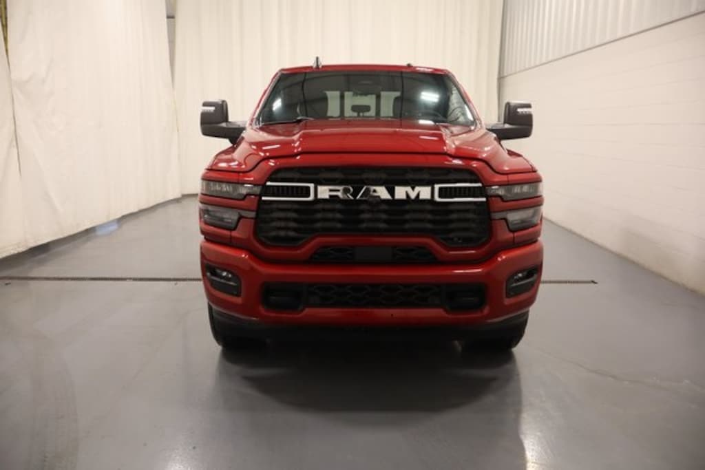 Molten Red Pearlcoat 2026 Ram 2500 Big Horn 4WD 8-Speed Automatic 6.7L I6 2500 Big Horn, 6.7L I6, 4WD, Molten Red Pearlcoat, 115-Volt Auxiliary Front Power Outlet, 115V Auxiliary Rear Power Outlet, 12" Touchscreen Display, 2 Way Rear Headrest Seat, 2nd Row in Floor Storage Bins, 4 Way Front Headrests, 400W Inverter, 4G LTE Wi-Fi Hot Spot, 9 Alpine Speakers with Subwoofer, Active Lane Management System, Adaptive Steering System, Air Conditioning ATC with Dual Zone Control, Alexa Built-in, Anti-Spin Differential Rear Axle, Apple CarPlay, Auto High Beam Headlamp Control, Auto Power-Folding Mirrors, Auto-Dimming Rear-View Mirror, Big Horn Level 2 Plus Equipment Group, Black Exterior Mirrors, Black Interior Accents, Blind Spot and Cross Path Detection, Body Color Grille-Surround, Bucket Seats, Center Stop Lamp with Cargo View Camera, Cluster 7.0" TFT Color Display, Cold Weather Group, Connected Travel and Traffic Services, Connectivity - US/Canada, Dampened Tailgate, Disassociated Touchscreen Display, Drowsy Driver Detection, Dual Glove Boxes, Dual Wireless Charging Pad, Electronic Stability Control, Emergency Vehicle Alert System (EVAS), Engine Block Heater, Exterior 115V AC Outlet, Exterior Mirrors Courtesy Lamps, Exterior Mirrors with Heating Element, Exterior Mirrors with Supplemental Signals, Foam Bottle Insert (door Trim Panel), Folding Flat Load Floor Storage, Footwell Courtesy Lamp, For Details, Visit DriveUconnect.com, For More Info, Call 800-643-2112, Forward and Reverse Utility Lights, Front fog lights, Front Seat Back Map Pockets, Full Length Upgraded Floor Console, Fully automatic headlights, Global Telematics Box Module, Glove Box Lamp, Google Android Auto, GPS Antenna Input, GPS Navigation, HD Radio, Heated Front Seats, Heated Steering Wheel, Integrated Voice Command with Bluetooth, LED Bed Lighting, LED Tail Lamps, Locking Lower Glove Box, Luxury Steering Wheel, Manual Adjust 4-Way Front Passenger Seat, Media Hub with 2 Charge Only USBs, Mirror Running Lights, MOPAR Deployable Bed Step, MOPAR Spray in Bedliner, MOPAR Winter Front Grille Cover, Off-Road Info Pages, Painted Front Bumper, Painted Rear Bumper, ParkView Rear Back-Up Camera, Power 2-Way Driver Lumbar Adjust, Power Adjust 8-Way Driver Seat, Power Adjust Mirrors, Power Adjustable Pedals, Power Heated Folding Telescopic Mirrors, Power Telescoping Mirrors, Power-Adjustable Convex Aux Mirrors, Premium Cloth Bucket Seats, Quick Order Package 24Z Big Horn, Radio: Uconnect 5 Navigation with 12.0" Display, Rain Sensitive Windshield Wipers, Rear 60/40 Folding Seat, Rear Dome with on/Off Switch Lamp, Rear Power Sliding Window, Red Tail Lamp Bezels, Remote Start System, Selectable Tire Fill Alert, SiriusXM Radio Service, SiriusXM with 360L, Sport Appearance Package, Sport Decal, Steering Wheel Mounted Audio Controls, Sun Visors with Illuminated Vanity Mirrors, Surround View Camera System, Traffic Sign Recognition, Trailer Reverse Guidance, Trailer Tire Pressure Monitoring System, Trailer Tow Pages, Universal Garage Door Opener.